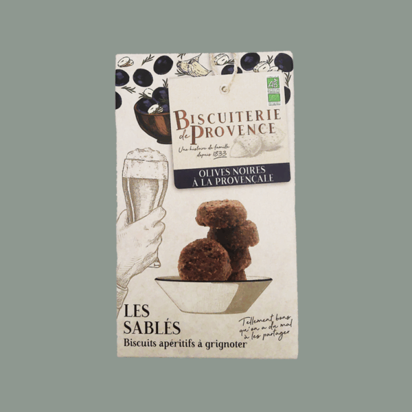 Bio-Gebäck mit schwarzen Oliven von ‚Biscuiterie de Provence‘