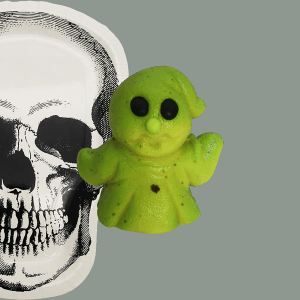 Kleines, knallig grünes Gespenst aus Marzipan aus dem Hause Frischmann.